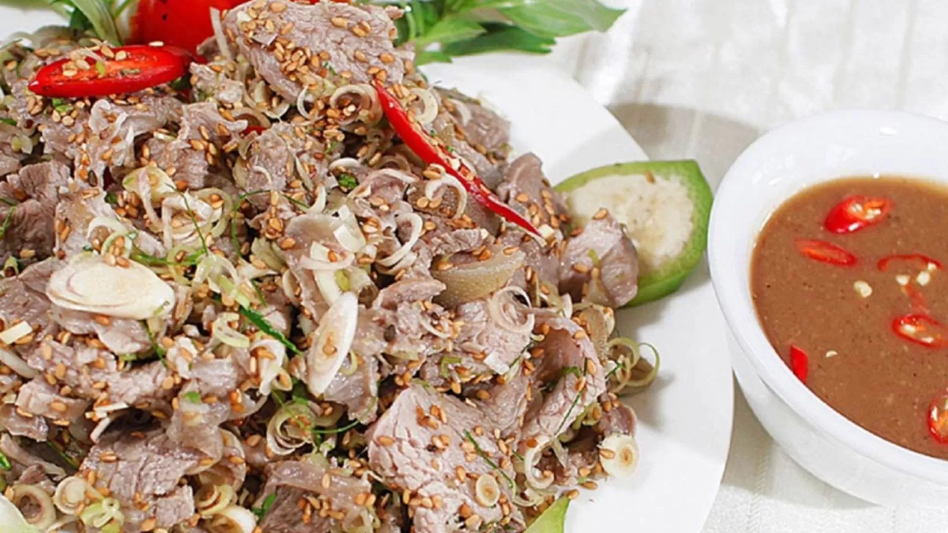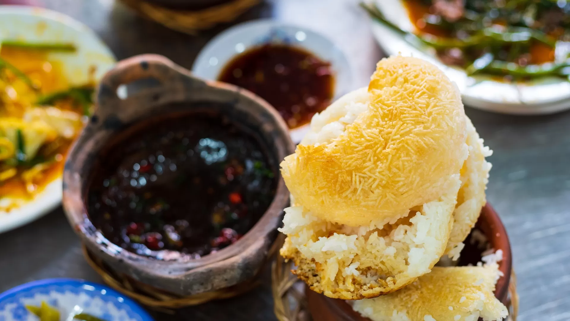 Le cơm cháy : Un plat local de riz brûlé croustillant servi avec une sauce de viande et de légumes.