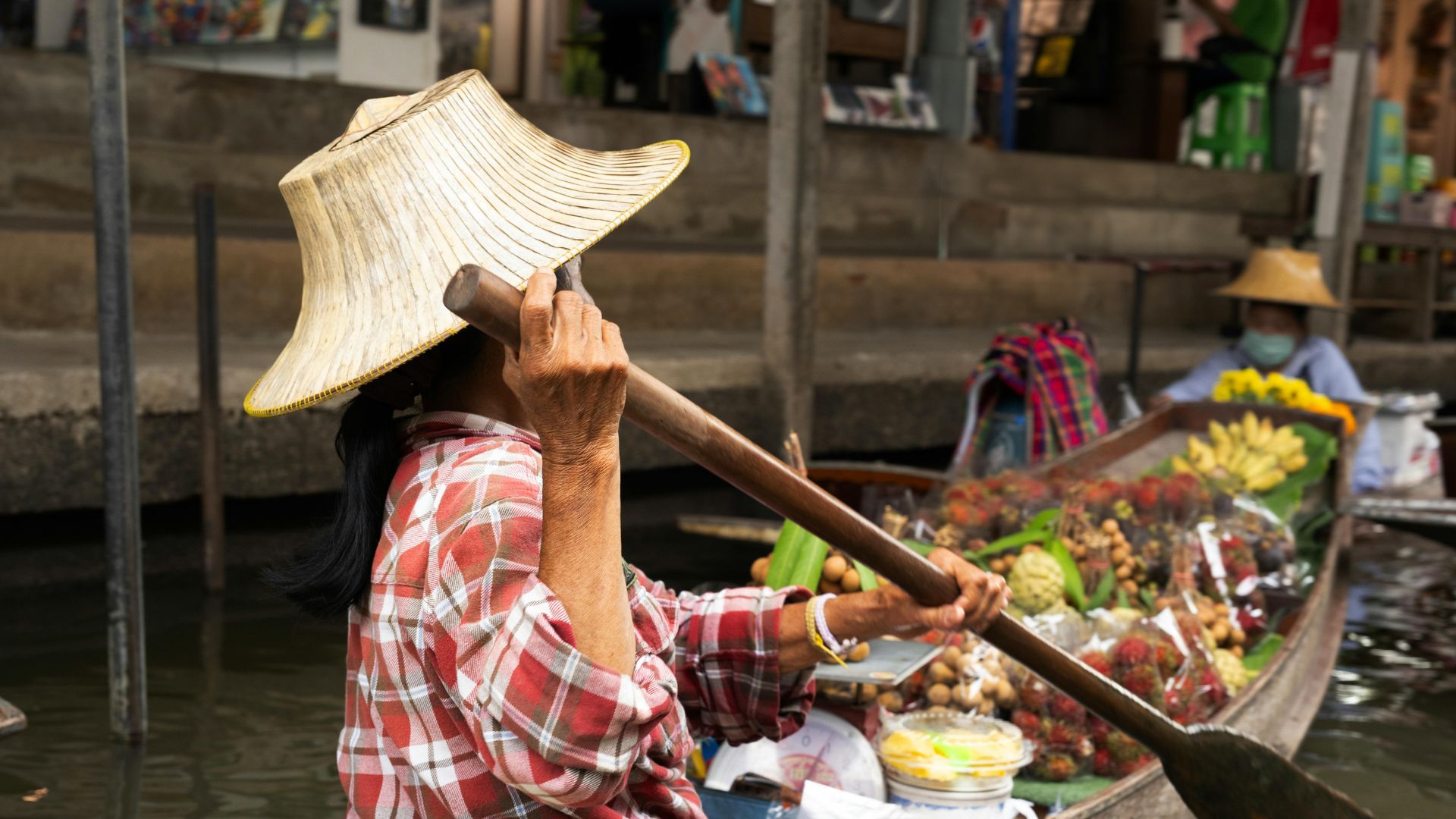 La visite se poursuit ensuite vers le célèbre marché flottant de Damnoen Saduak. Là, l’ambiance colorée et animée invite à découvrir les paysannes qui échangent toujours leurs fruits et légumes depuis leurs embarcations fragiles. La balade en bateau à travers les klongs, au pied des maisons sur pilotis, permet d’atteindre le marché où l’on déambule parmi les barques chargées de produits locaux, d’aliments, d’épices et d’artisanat.