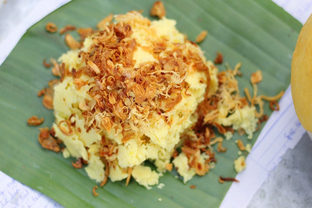 • Xoi xeo : riz gluant jaune au curcuma, garni de pâte de haricots mungo et d'oignons frits.