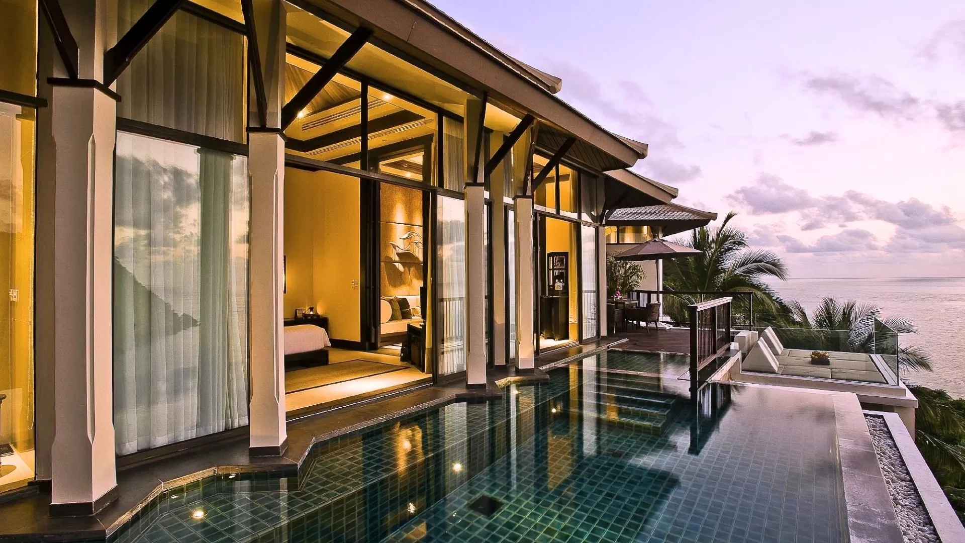 - 71 pavillons et villas ultra-luxueux, chacun doté d'une piscine privée, d'espaces intérieurs ouverts et d'une vue sur l'océan ou les jardins tropicaux.