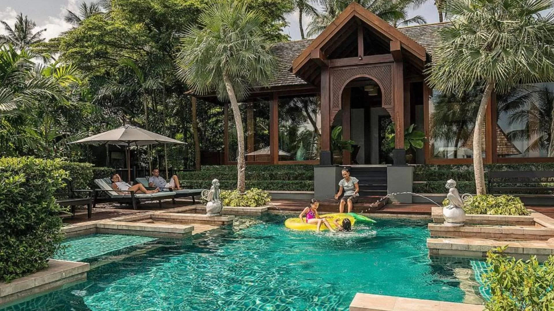 - Installations bien-être primées : le spa oriental, situé de l'autre côté de la rivière, propose des suites de soins, une salle de sport, un sauna, un hammam, un jacuzzi et des options privées de yoga et de Muay Thai.