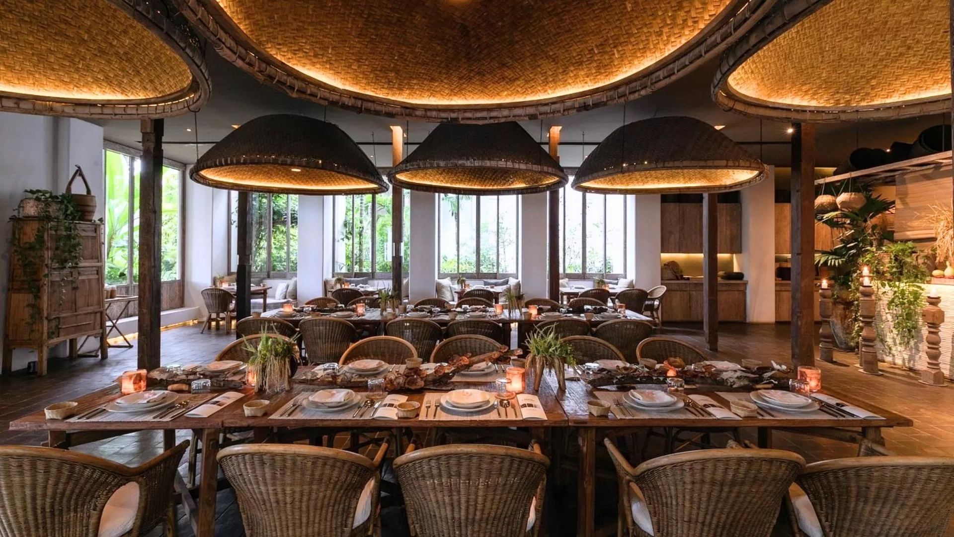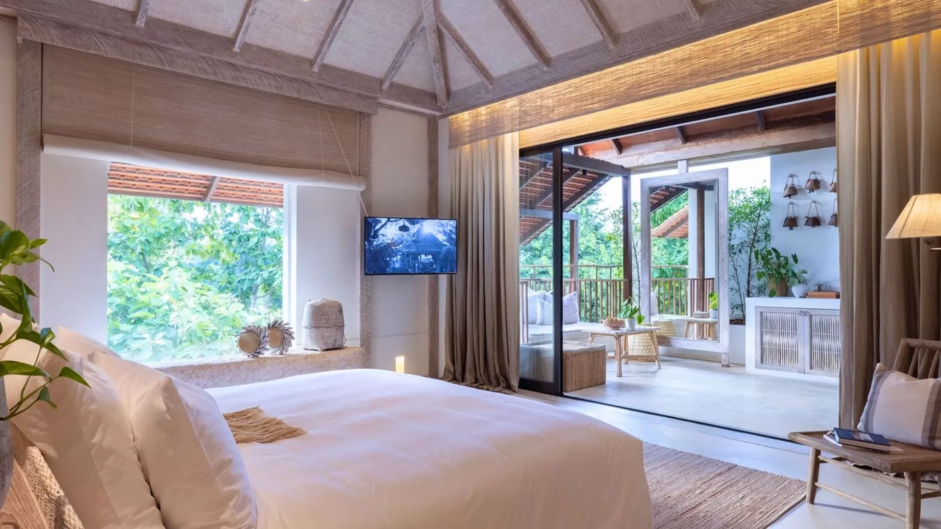 - 33 suites spacieuses (HuenBon, Rin Terrace, Kraam Pool) à la décoration minimaliste, avec de hauts plafonds, des terrasses privées, certaines avec bassin profond, alliant teck artisanal, textiles indigo et céramiques locales.