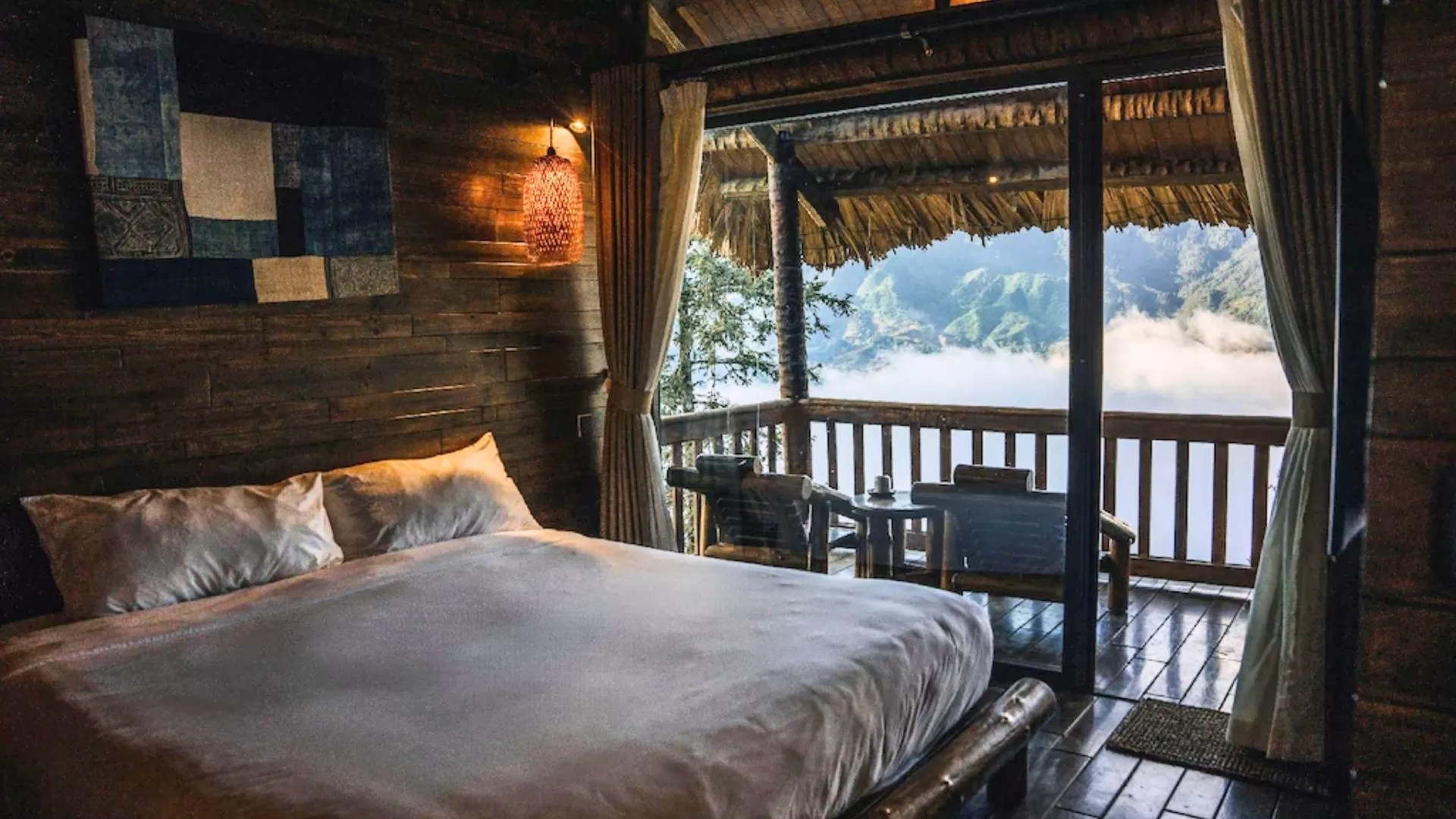 Situated atop a hill overlooking the Hoang Lien Son mountain range and the Muong Hoa Valley, the lodge offers breathtaking panoramic views of the surrounding natural beauty. Its remote and tranquil setting immerses guests in the serene ambiance of nature.