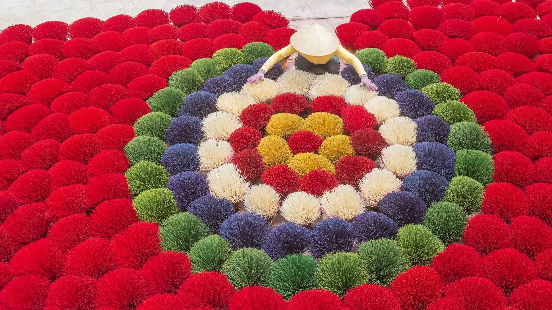 At Quang Phu Cau incense village, colorful bundles of handmade incense create a vibrant cultural scene - and a great photo spot.