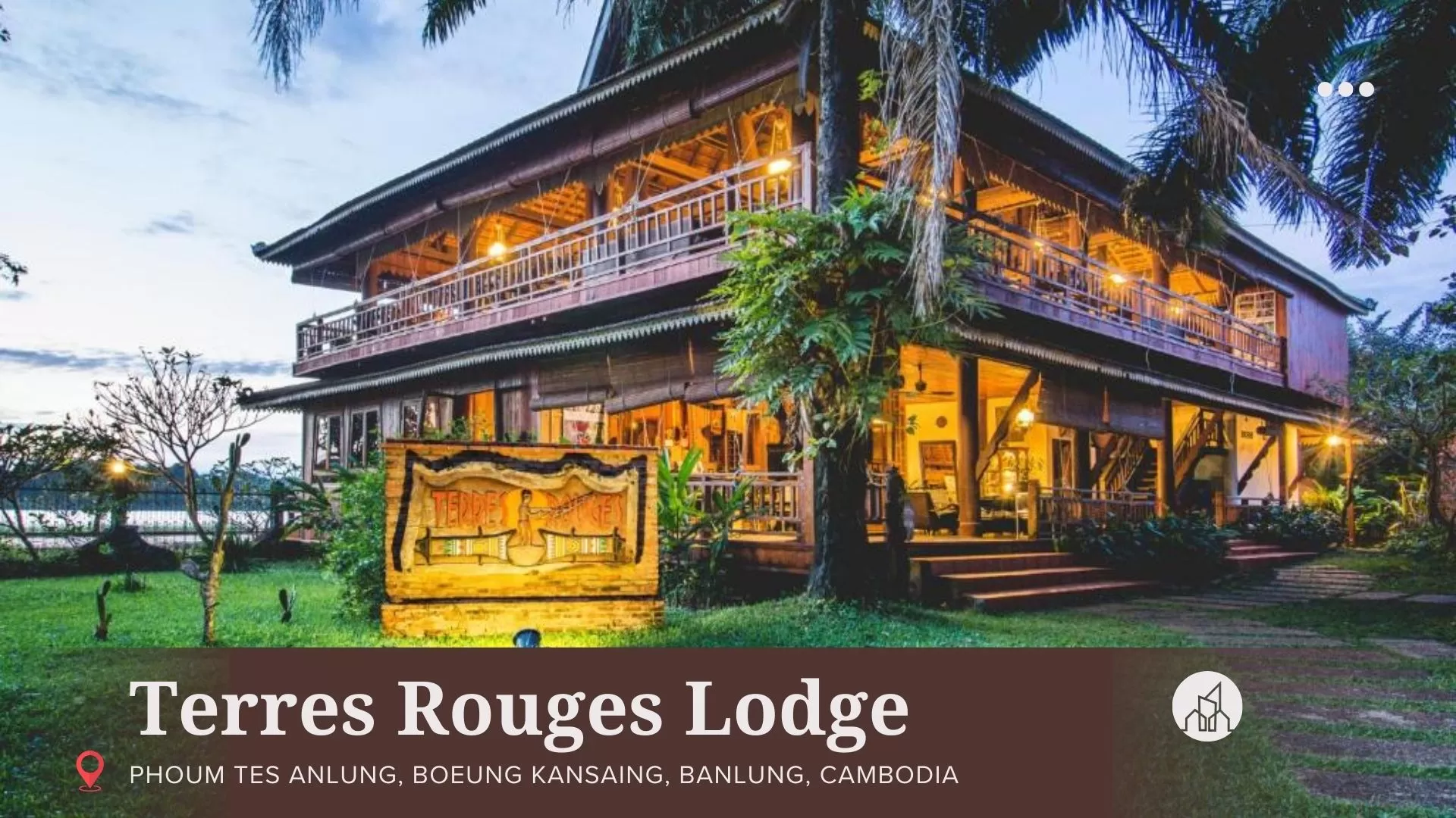 Offering elegant rooms with lake or garden views, Terres Rouges Lodge combines Cambodian charm with French touches. Guests can relax by the outdoor pool, enjoy Cambodian–French cuisine, and explore nearby waterfalls by bike or car rental. Airport shuttle available.