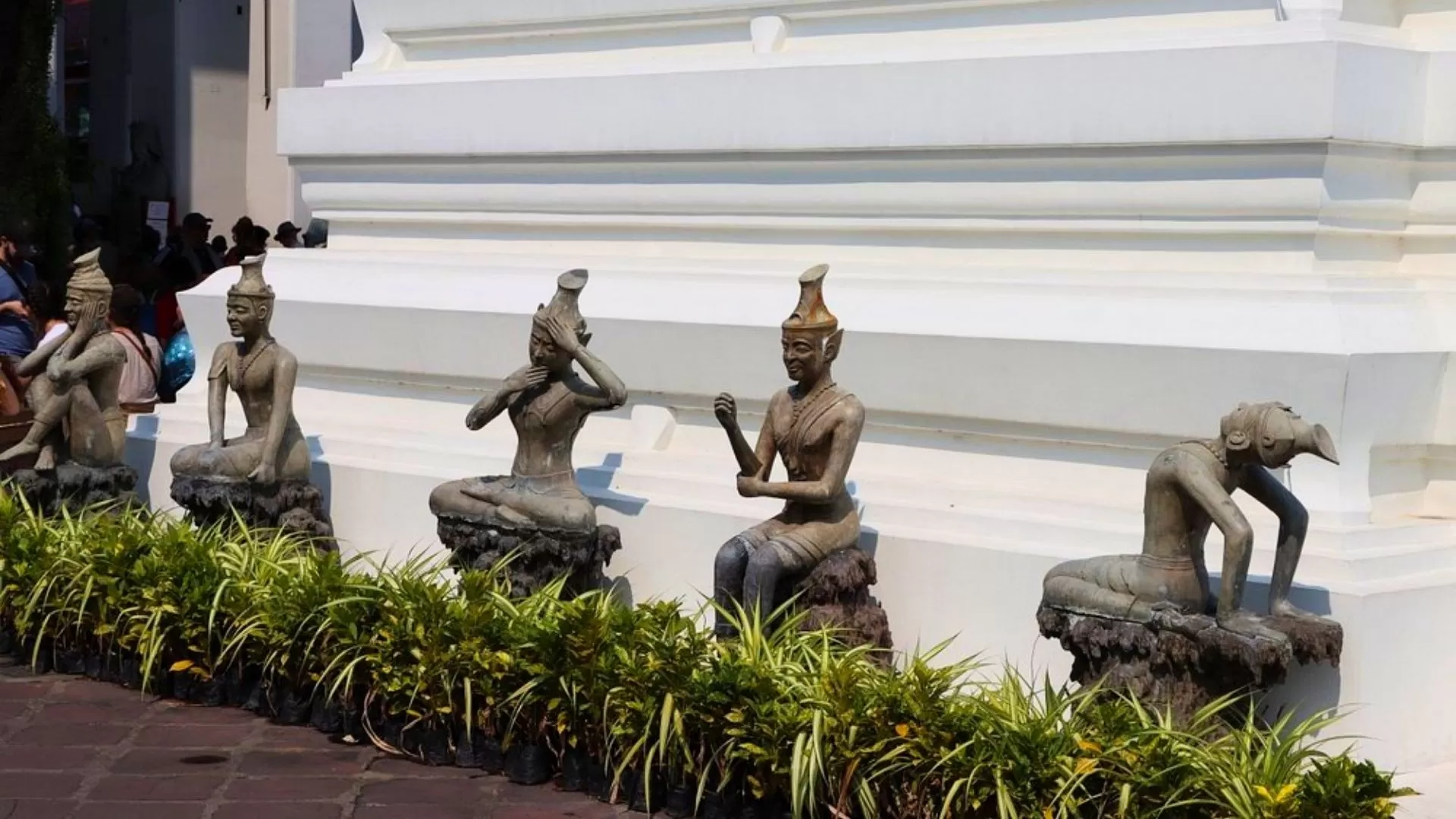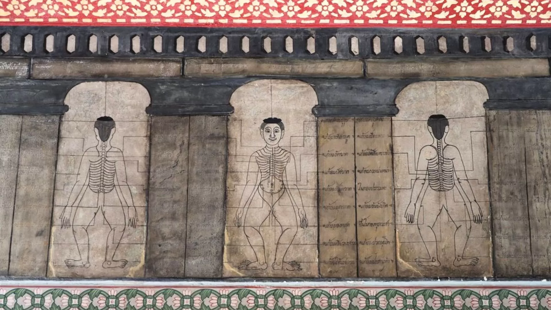 Beyond its grand monuments, Wat Pho’s walls are adorned with murals depicting Buddhist cosmology, folklore and daily life in old Siam. The famous stone inscriptions provide knowledge on Thai medicine and yoga positions and dozens of statues demonstrate poses and acupressure points used in traditional healing.